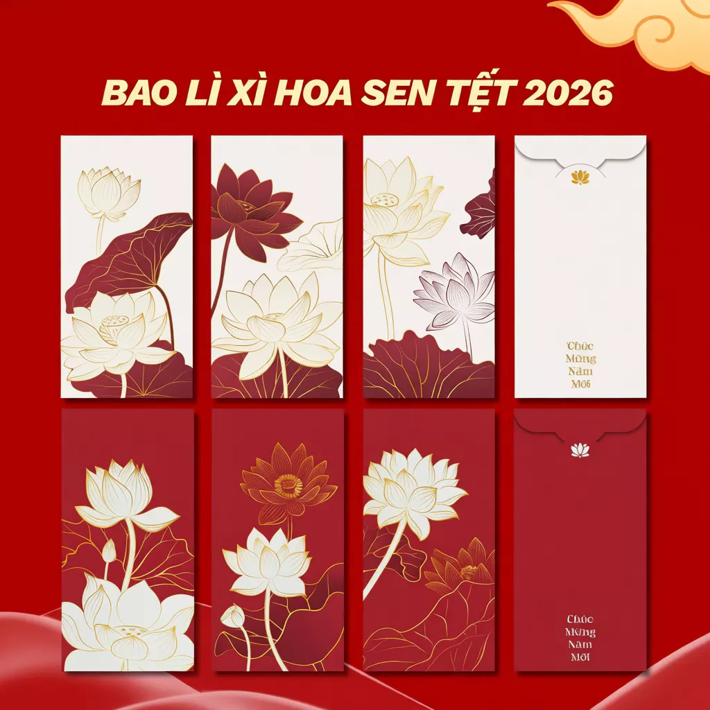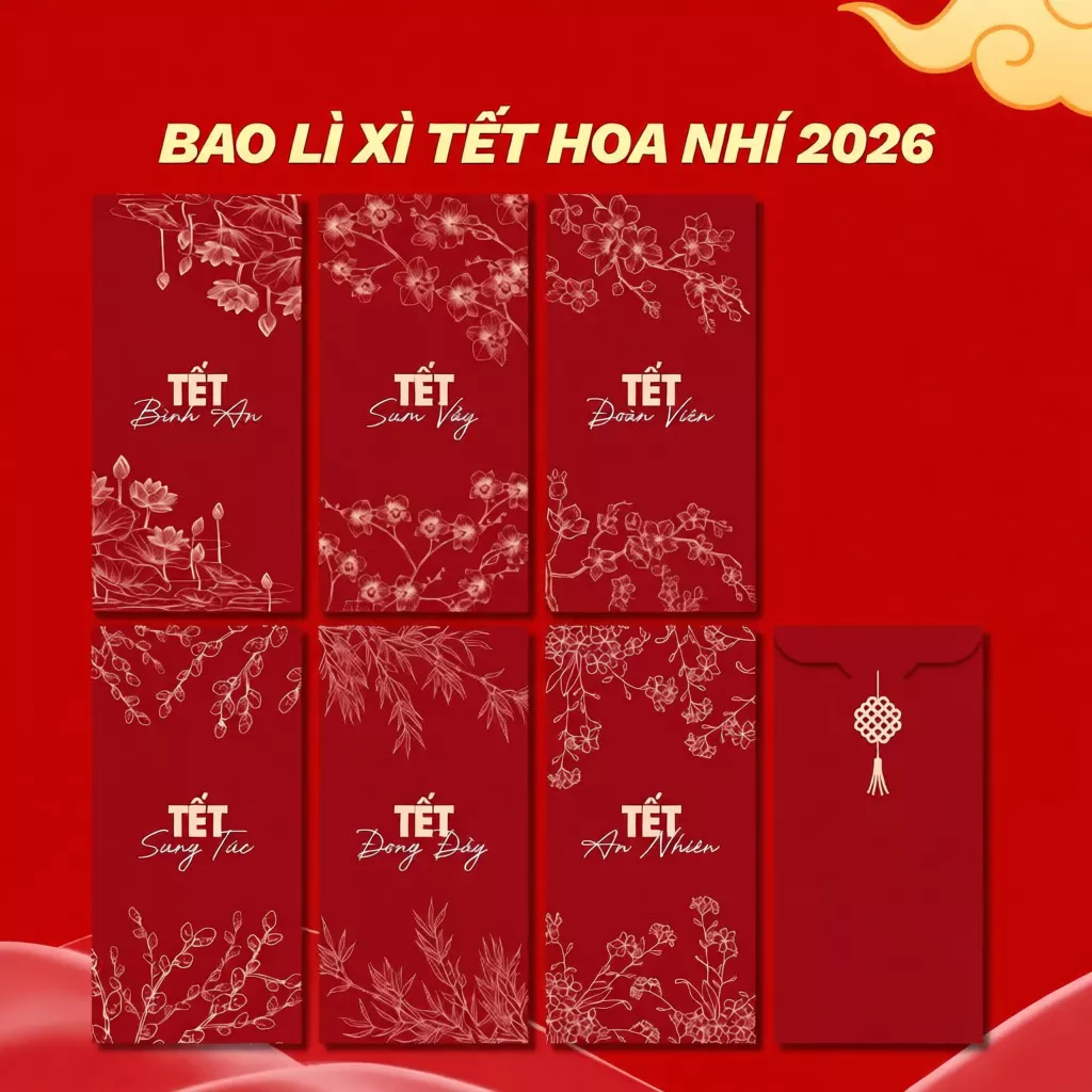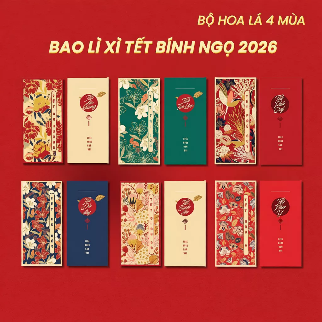 【Đặc quyền cho chủ thẻ tín dụng】Set bao lì xì Tết 2026 Thiết kế Hoa lá mùa xuân, Hoa Sen, Tết Gia Đình Đoàn Viên – Giấy C150 dày cán màng cao cấp