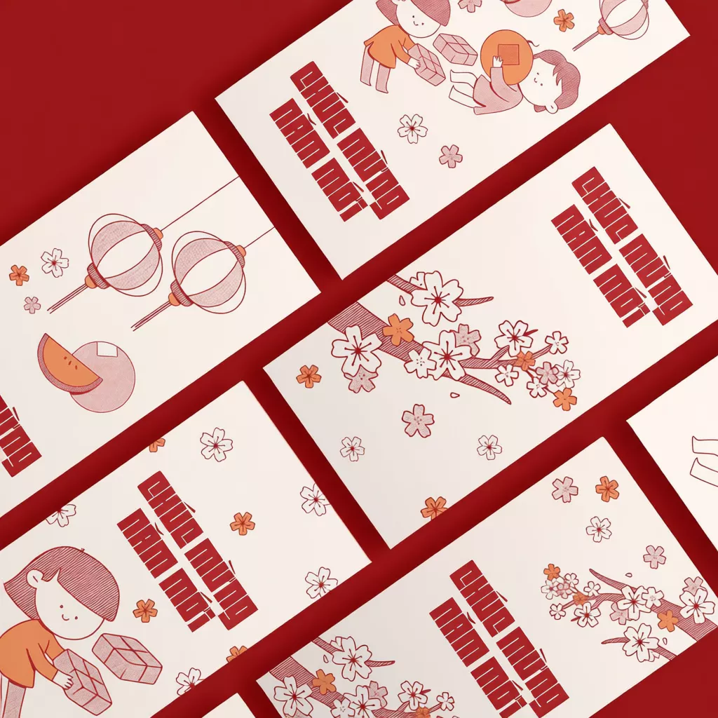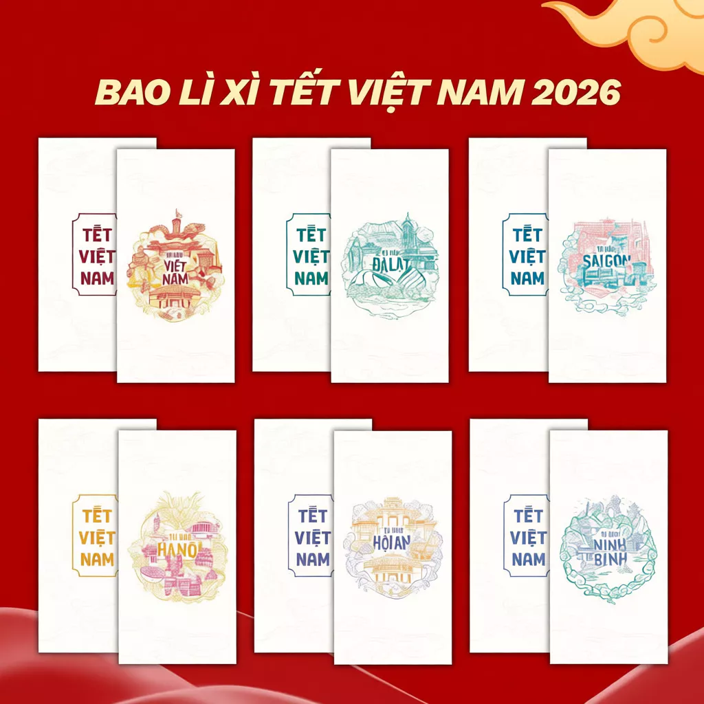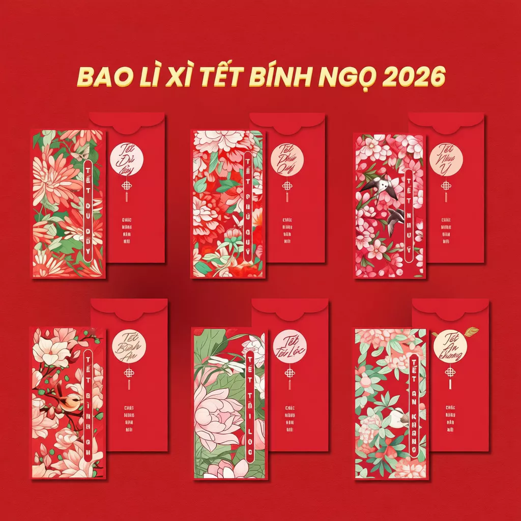 【Đặc quyền cho chủ thẻ tín dụng】Set bao lì xì Tết 2026 Thiết kế Hoa lá mùa xuân, Hoa Sen, Tết Gia Đình Đoàn Viên – Giấy C150 dày cán màng cao cấp