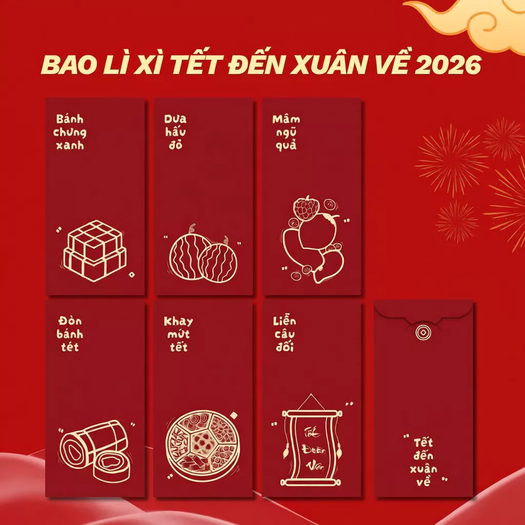 🌟 Điểm nổi bật của sản phẩm 🌟 – Thiết kế đẹp mắt: Bao lì xì Tết 2026 với các mẫu thiết kế độc đáo như Hoa Sen, Hoa Lá Bốn Mùa, và Tết Hoa Nhí, mang đến sự tinh tế và truyền thống. – Chất liệu giấy C150 cao cấp: Giấy dày, cán màng mờ, giúp bảo vệ phong bao khỏi trầy xước và tăng độ bền. – Kích thước phù hợp: Kích thước 16×8 cm, nắp 1.5 cm, đựng vừa tờ 500k đứng, rất tiện lợi. 🎨 Các biến thể có sẵn 🎨 – BLX Hoa Sen: Set 12 cái – BLX Hoa Lá Bốn Mùa: Set 48 cái – BLX Tết Hoa Nhí: Set 48 cái – BLX Tết Trọn: Set 12 cái – BLX Tết Độc Lập: Set 48 cái 📦 Thông tin bổ sung 📦 – Sản phẩm có sẵn trong nhiều biến thể để phù hợp với nhu cầu của bạn. – Mỗi set bao gồm 12 hoặc 48 cái, tùy chọn theo yêu cầu. Chọn bao lì xì Tết 2026 để mang lại may mắn và tài lộc cho mọi người trong gia đình và bạn bè của bạn!